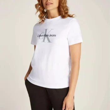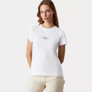 Calvin Klein Jeans Women’s White Cotton T-Shirt with Printed Design