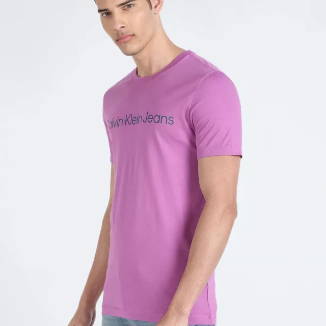 Calvin Klein Jeans Men’s Purple Plain Round Neck T-Shirt