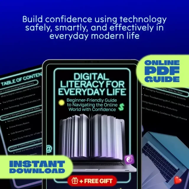 Feeling overwhelmed by the digital world? You’re not alone. Digital Literacy for Everyday Life is a practical, easy-to-follow guide that helps you feel confident, capable, and safe when using everyday technology. Whether you’re navigating the internet, using social media, or just trying to stay organized with apps, this digital guide gives you the knowledge and tools you need—without the tech jargon.