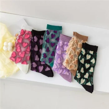 Heart Print Crystal Silk Socks