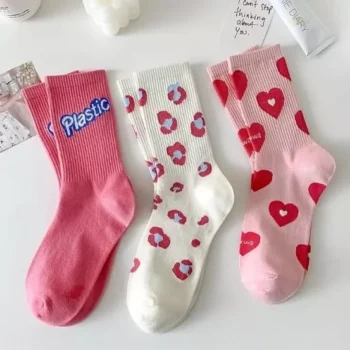 Pink Sweet Love Cotton Casual Middle Tube Socks