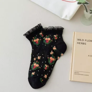 Harajuku Retro Floral Embroidered Lace Ruffle Socks