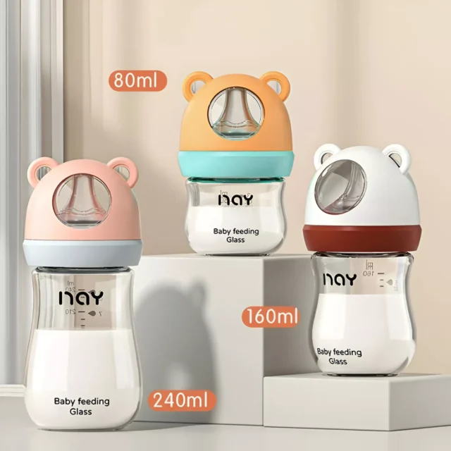 Wide Caliber Anti-Colic Glass Baby Bottle – 80ml, 160ml & 240ml BPA-Free